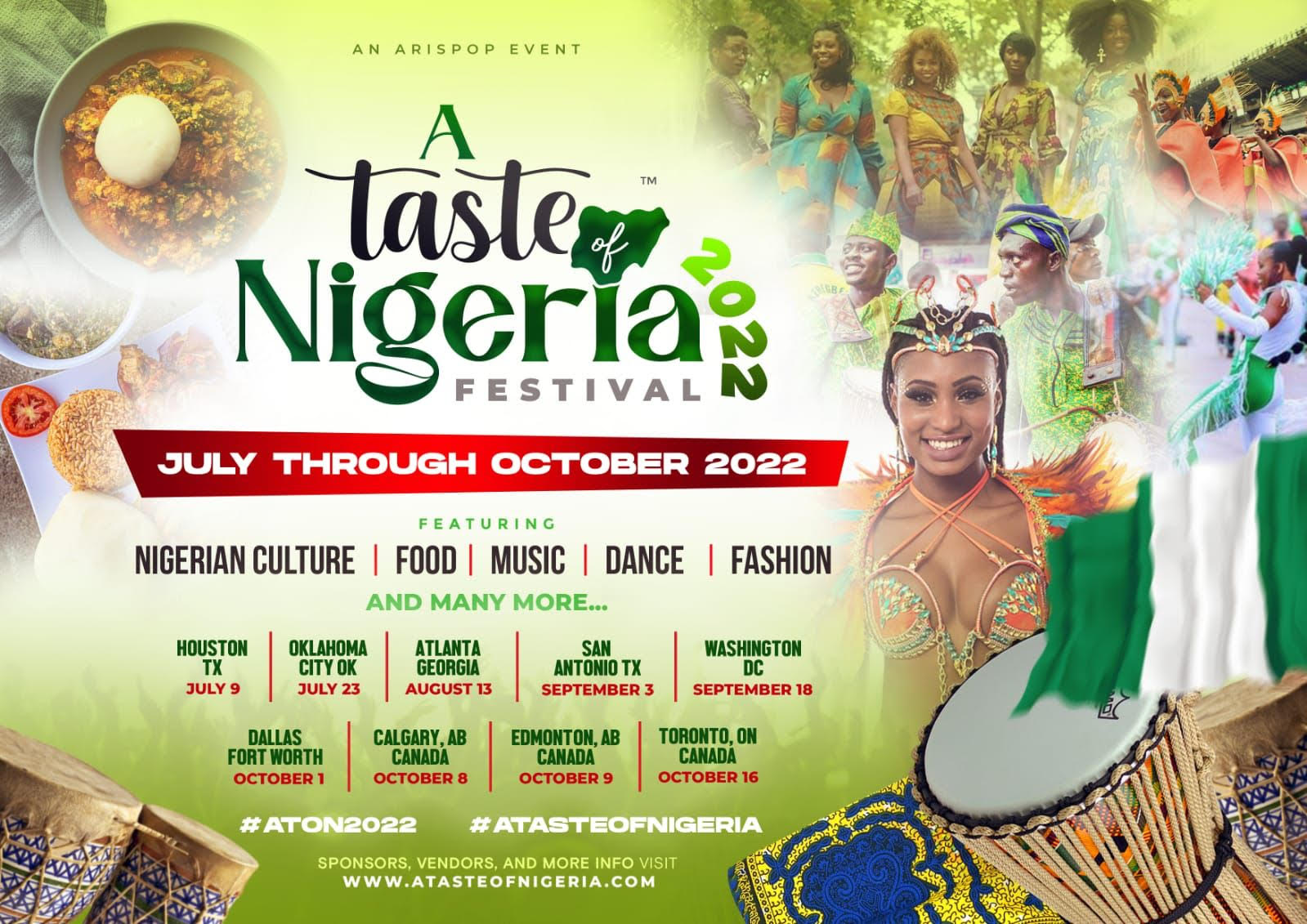 A Taste of Nigeria is an annual event produced by Arispop for the Nigerian community and other nationalities interested in learning about the Nigerian and African cultures.