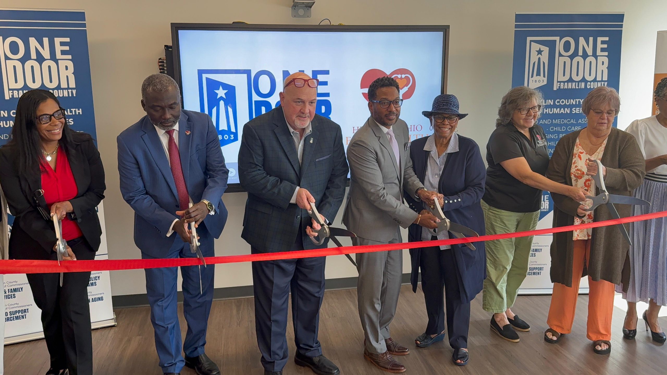 The Franklin County Board of Commissioners joined community partners and neighbors at a ribbon cutting to mark the opening of a new One Door branch in partnership with Heart of Ohio Family Health at 5000 E. Main Street, Columbus, OH 43213.