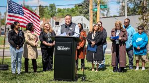 The event, held at 2:00 PM at 2345 E. Mound St., highlighted a newly completed sidewalk and improved traffic crossing area designed to provide safer access for students walking to and from school. The project stands as a visible example of the city’s ongoing commitment to pedestrian safety, especially in high-risk areas.